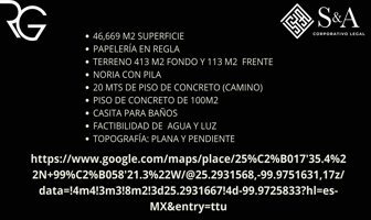 Terreno habitacionalVenta$12,600,000 MXNVenta de terreno en calle #S/D, Col. Paso Hondo, Allende, Nuevo León, México, C.P. 67353, ID: 28001916 28000 m2