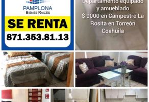 DepartamentoRenta$10,500 MXNDepartamento disponible en renta en Casuarinas #72, Col. Ampliación Senderos, Torreón, Coahuila de Zaragoza, México, C.P. 27018, ID: 30403562 2 Recámaras 2 Baños 100 m2 Amueblado A/C