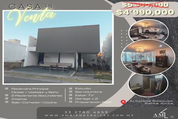 CasaVenta$4,590,000 MXNVenta de casa en 207 bosque realtlajomulco de zuñiga, Col. Arboleda Bosques de Santa Anita, Tlajomulco de Zúñiga, Jalisco, México, C.P. 45645, ID: 29293311 2 Recámaras 3 Baños 205 m2