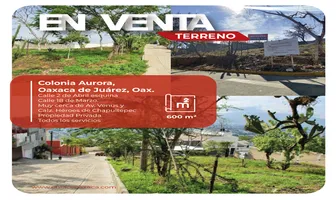Terreno habitacionalVenta$4,680,000 MXNTerreno disponible en venta en 2 de Abril #s/n, Col. Aurora, Oaxaca de Juárez, Oaxaca, México, C.P. 68045, ID: 29384361 600 m2 Luz