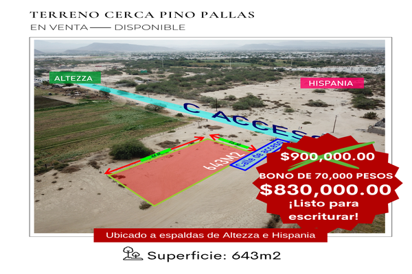 Terreno habitacionalVenta$830,000 MXNSe vende terreno Acceso, Col. Altezza Residencial, La Paz, Baja California Sur, México, C.P. 23085, ID: 30051420 643 m2