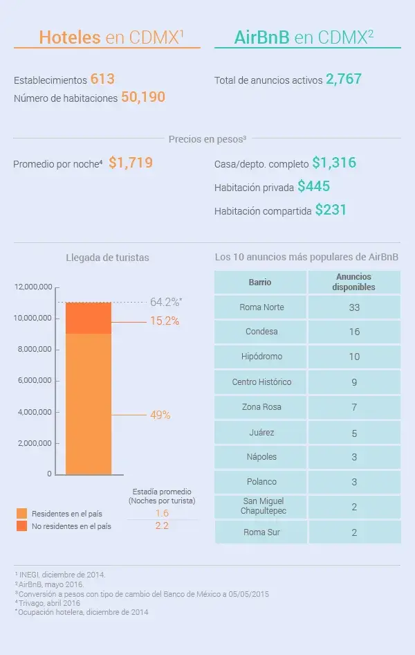 El topLas colonias Roma Norte, Condesa, Hipódromo, Centro Histórico y Zona Rosa son los barrios más populares para los turistas que buscan hospedaje a través de la plataforma AirBnB.