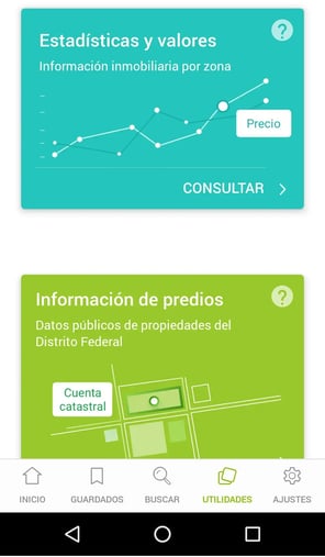 En la última actualización de la aplicación se agregó la sección de Utilidades en la que puedes consultar la información disponible sobre el tipo de uso de suelo, la superficie del terreno, el mínimo de área libre o el máximo de niveles construidos permitidos. Así como datos sobre precios medios y características de los inmuebles.