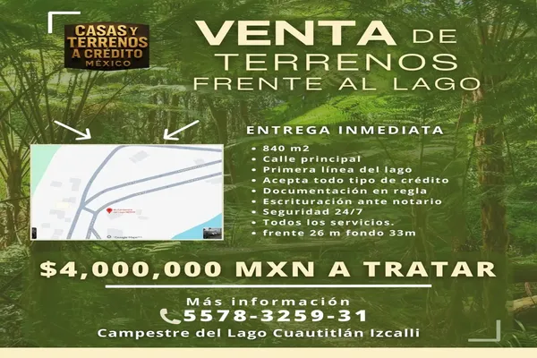 Terreno habitacionalVenta$4,000,000 MXNSe vende terreno Sin nombre de calle, Col. Campestre del Lago, Cuautitlán Izcalli, México, México, C.P. 54766, ID: 30721221 800 m2 Fibra