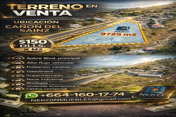 Terreno comercialVenta$792,000 USDTerreno comercial disponible en venta en blvd garcia #s/n, Col. Cañón del Sainz, Tijuana, Baja California, México, C.P. 22170, ID: 7093392 3 Recámaras 9900 m2