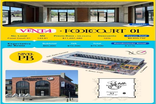 LocalVenta$9,933,732 MXNVenta de local en PLAZA ARCADA, Col. Centro Metropolitano, Saltillo, Coahuila de Zaragoza, México, C.P. 25022, ID: 28474823 1 Baño 143 m2