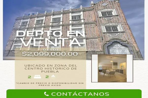DepartamentoVenta$2,100,000 MXNVenta de departamento , Col. Centro, Puebla, Puebla, México, C.P. 72000, ID: 28591285 2 Recámaras 2 Baños 65 m2