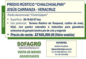 Terreno comercialVenta$3,645,000 MXNVenta de terreno comercial PREDIO RUSTICO DENOMINADO CHALCHIJAPAN #-Int. -, Col. Chalchijapan (Anexo el Paraíso), Jesús Carranza, Veracruz de Ignacio de la Llave, México, C.P. 96967, ID: 30421449 39190 m2