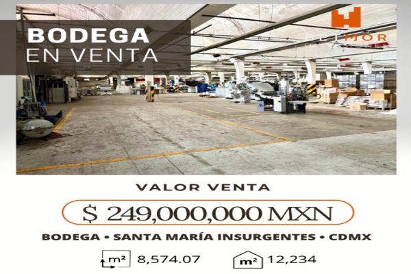 BodegaVenta$42,000,000 MXNBodega disponible en venta en Eje Central, Col. Guerrero, Cuauhtémoc, DF / CDMX, México, C.P. 06300, ID: 20957259