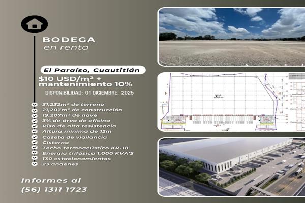 BodegaRenta$209,780 USDBodega en renta, , Col. El Paraíso, Cuautitlán, México, México, C.P. 54870, ID: 30928552