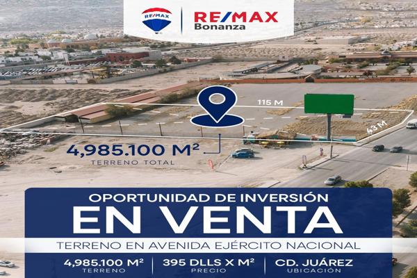 Terreno comercialVenta$1,969,115 USDVenta de terreno comercial en Ejercito Nacional, Col. Del Solar, Juárez, Chihuahua, México, C.P. 32543, ID: 29834735 4985 m2