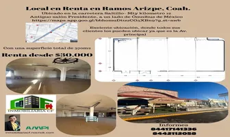 LocalRenta$60,480 MXNLocal en renta disponible en , Col. Manantiales del Valle Sector II, Ramos Arizpe, Coahuila de Zaragoza, México, C.P. 25904, ID: 29411803 378 m2 71 Estacionamientos