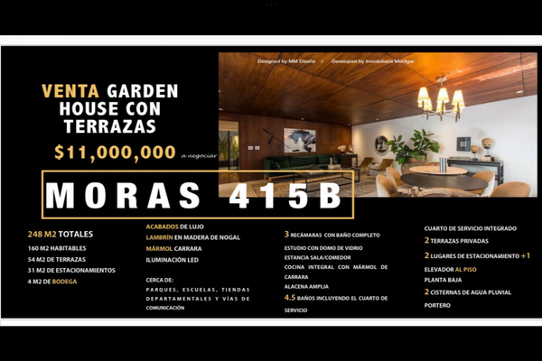 DepartamentoVenta$11,000,000 MXNVenta departamento en Moras, Col. Del Valle Sur, Benito Juárez, DF / CDMX, México, C.P. 03104, ID: 27053491 3 Recámaras 3 Baños 248 m2 Terraza Ascensor C. servicio