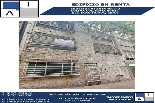 EdificioRenta$120,000 MXNEdificio en renta disponible en COLIMA #S/N, Col. Roma Norte, Cuauhtémoc, DF / CDMX, México, C.P. 06700, ID: 30121607 1 Baño 460 m2