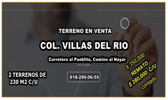 Terreno habitacionalVenta$160,000 MXNVenta de terreno en carr dgo canatlan, Col. José Guadalupe Aguilera (Santa Lucia), Canatlán, Durango, México, C.P. 34465, ID: 28717513 290 m2 Alberca C. servicio