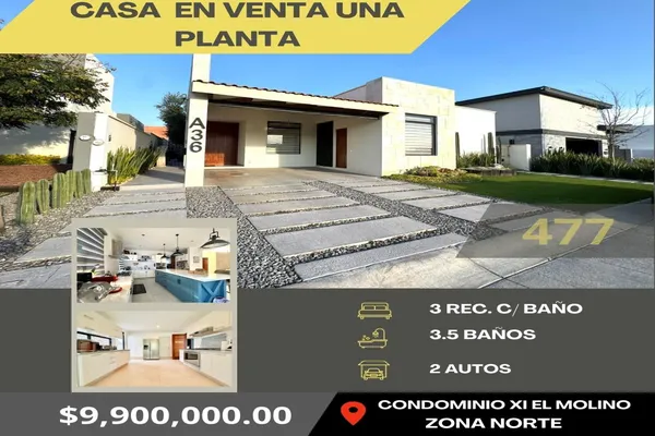 Casa en condominioVenta$9,900,000 MXNSe vende casa en condominio en El molino #1, Col. El Molino Residencial y Golf, León, Guanajuato, México, C.P. 37138, ID: 30854124 3 Recámaras 4 Baños 278 m2 2 Estacionamientos Lavandería
