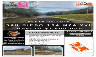 Terreno habitacionalVenta$1,600,000 MXNTerreno en venta, Lote San Diego 104 Mz Xvi Fracc Rancho San Diego Ixtapan Sal #104 XVI, Col. El Salitre, Ixtapan de la Sal, México, México, C.P. 51924, ID: 27452812 683 m2 Teléfono