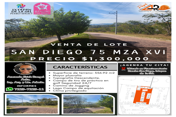 Terreno habitacionalVenta$1,300,000 MXNTerreno en venta disponible en Lote San Diego 74 Mz Xvi Rancho San Diego Edomex Vistas Pano #74 XVI, Col. El Salitre, Ixtapan de la Sal, México, México, C.P. 51924, ID: 27452751 569 m2 Teléfono