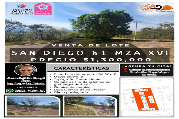 Terreno habitacionalVenta$1,300,000 MXNHermoso Lote San Diego 81 XVI, Col. El Salitre, Ixtapan de la Sal, México, México, C.P. 51924, ID: 27452771 536 m2 Teléfono