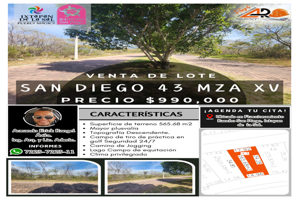Terreno habitacionalVenta$990,000 MXNVenta de terreno HERMOSO LOTE SAN DIEGO 43 XV #43, Col. El Salitre, Ixtapan de la Sal, México, México, C.P. 51924, ID: 27459514 565 m2 Teléfono