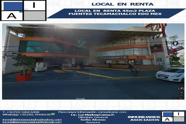 LocalRenta$13,000 MXNSe renta local en AV DE LAS FUENTES #178, Col. San Miguel Tecamachalco, Naucalpan de Juárez, México, México, C.P. 53970, ID: 30598195 1 Baño 45 m2 1 Estacionamiento