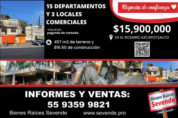CasaVenta$15,900,000 MXNCasa en venta disponible en Sin nombre de calle, Col. Ex-Hacienda El Rosario, Azcapotzalco, DF / CDMX, México, C.P. 02420, ID: 29313932 15 Recámaras 15 Baños 816 m2 Vigilancia Fibra