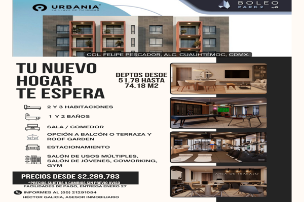 DepartamentoVenta$3,308,422 MXNVenta de departamento en Sin nombre de calle, Col. Felipe Pescador, Cuauhtémoc, DF / CDMX, México, C.P. 06280, ID: 30805139 3 Recámaras 2 Baños 66 m2 1 Estacionamiento Mascota Lavandería...