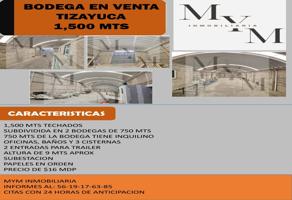 BodegaVenta$16,000,000 MXNSe vende bodega en Tizayuca , Col. Tizayuca Centro, Tizayuca, Hidalgo, México, C.P. 43800, ID: 29834194 1 Baño 1500 m2 Cisterna