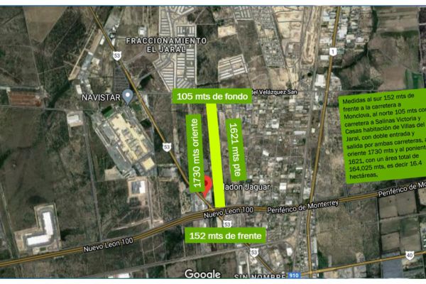 Terreno industrialVenta$246,037,500 MXNVenta de terreno industrial CARRETERA MONTERREY-MONCLOVA, Col. Andres Caballero Moreno Agrop, General Escobedo, Nuevo León, México, C.P. 66080, ID: 25749053 164025 m2