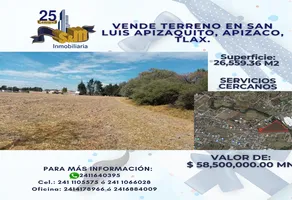 Terreno habitacionalVenta$58,500,000 MXNVenta de terreno Angel Solana #1, Col. San Luis Apizaquito, Apizaco, Tlaxcala, México, C.P. 90401, ID: 12539047 26559 m2