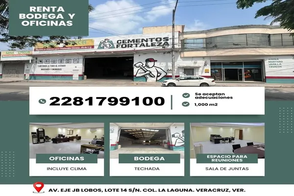 Nocnok id: nn-ql1000210. excelente bodega y oficinas sobre una avenida muy transitada cerca de comercios, zona habitacional, escuelas. descripcion: *planta baja* cuenta con bodega de 1000 mts, baños...