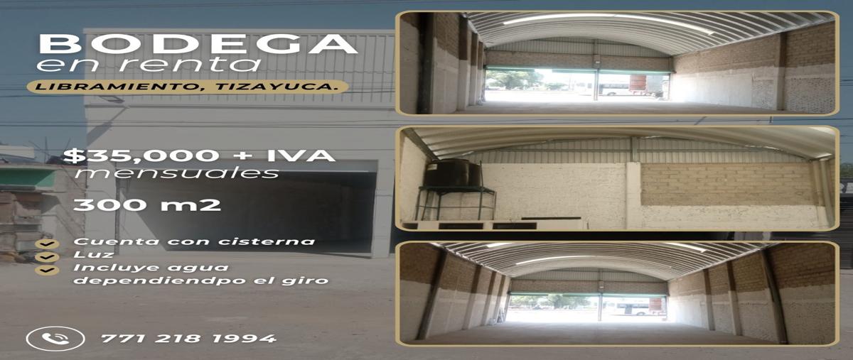 Bodega en renta en tizayuca con un superficie de 300 m², *10m* de frente y *30m* de fondo. ubicado estratégicamente *frente a libramiento.* ✨ precio de renta: $35,000 más iva.