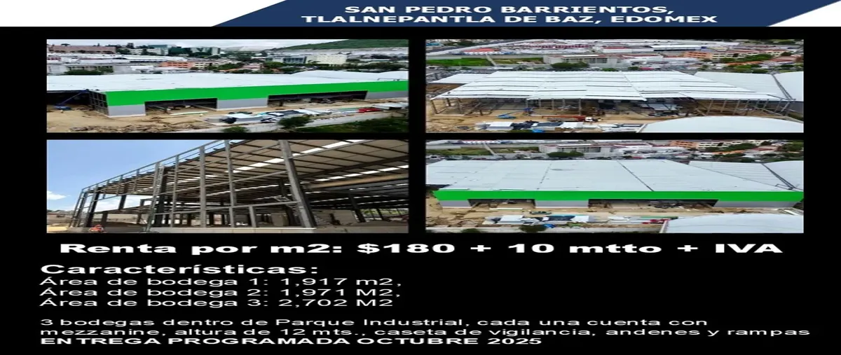 Nocnok id: nn-st1000475. características: área de bodega 1: 1,917 m2, área de bodega 2: 1,971 m2, área de bodega 3: 2,702 m2 3 bodegas dentro de parque industrial, cada una cuenta con mezzanine, ...