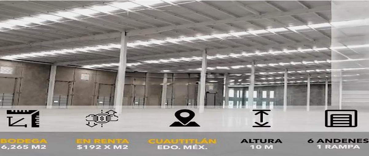 Superficie total: 6,265 m²: nave industrial: 6,005 m² mezzanine: 260 m²precio de renta: $192 mxn por m² renta mensual total: $1,202,880 mxn precios más iva mantenimiento: 10% mensual + ivadescripción ...