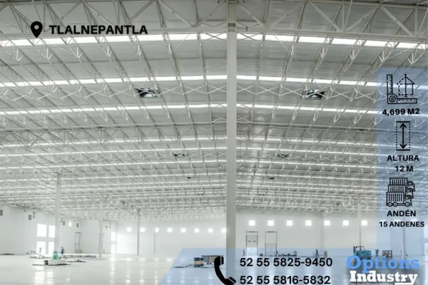Nocnok id: mx24-jl5076. available space: 4,699 m2 total square footage of the industrial warehouse: 4,699 m2 office or mezzanine square footage: 265 m2 minimum height of the industrial warehouse: 1...