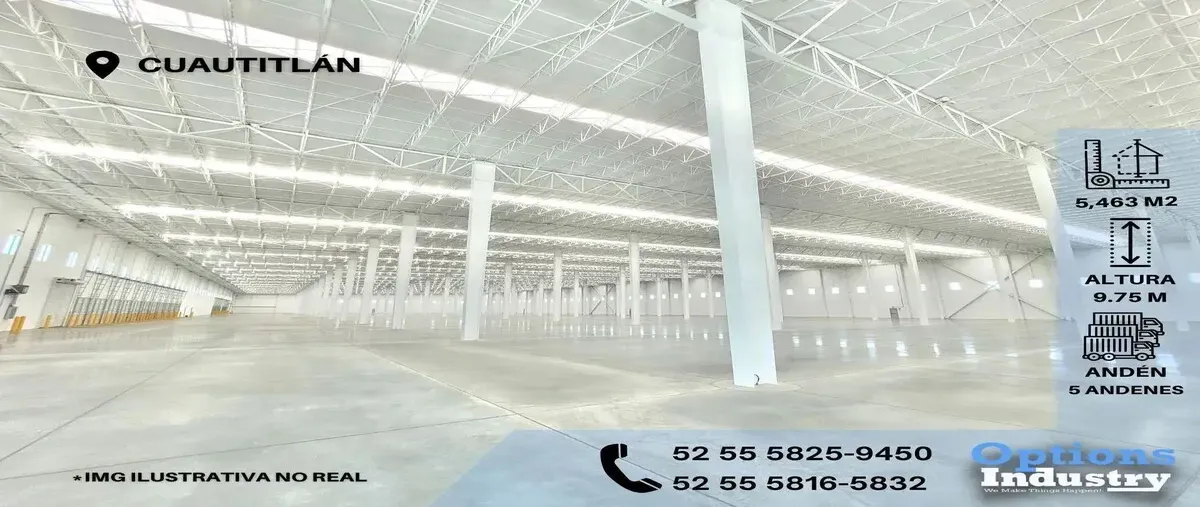 Nocnok id: mx25-es10127. alquiler de inmueble industrial en cuautitlán br13861 espacio disponible: 5,463 m2 metraje total de la nave industrial: 5,463 m2 metraje de oficina o mezzanine: 430 m2 altur...