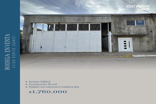 Bodega en venta ejido benito juárez terreno 330m2 construcción 96 m2 tejabán con estructura metálica alta $1,760,000. id: eb-vi2797