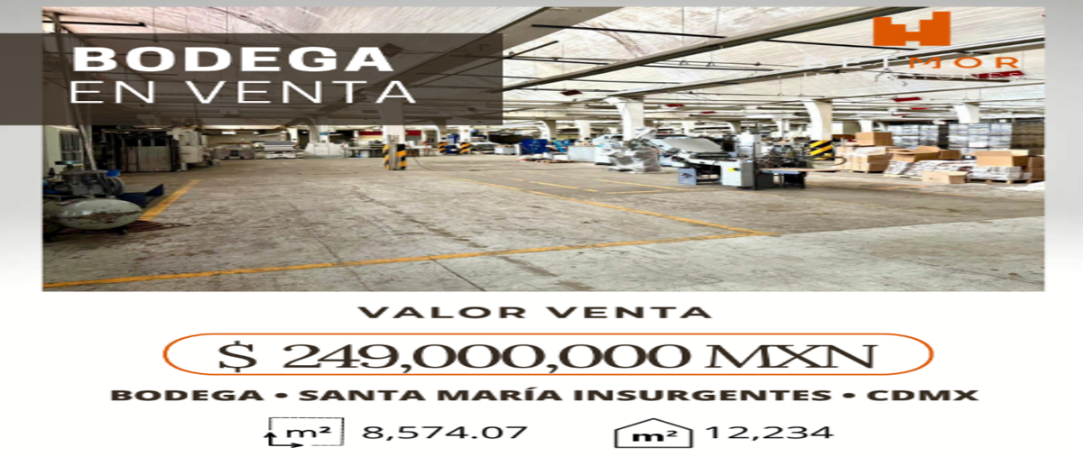 Bodega en venta en santa maría insurgentes. precio negociable. cambio de uso de suelo a hm15/20/z. contáctame para agendar una cita y conocer la bodega.
