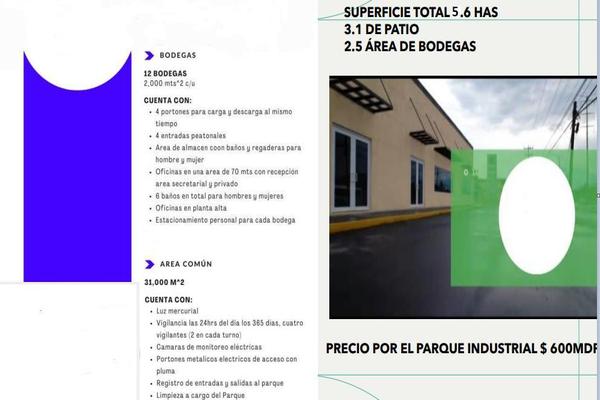 Superficie total 5 ha 3 ha de patio 2 ha de bodegas 12 bodegas de 2,000 m2 c/u (todas las especificaciones en las fotos). id: eb-ns7702