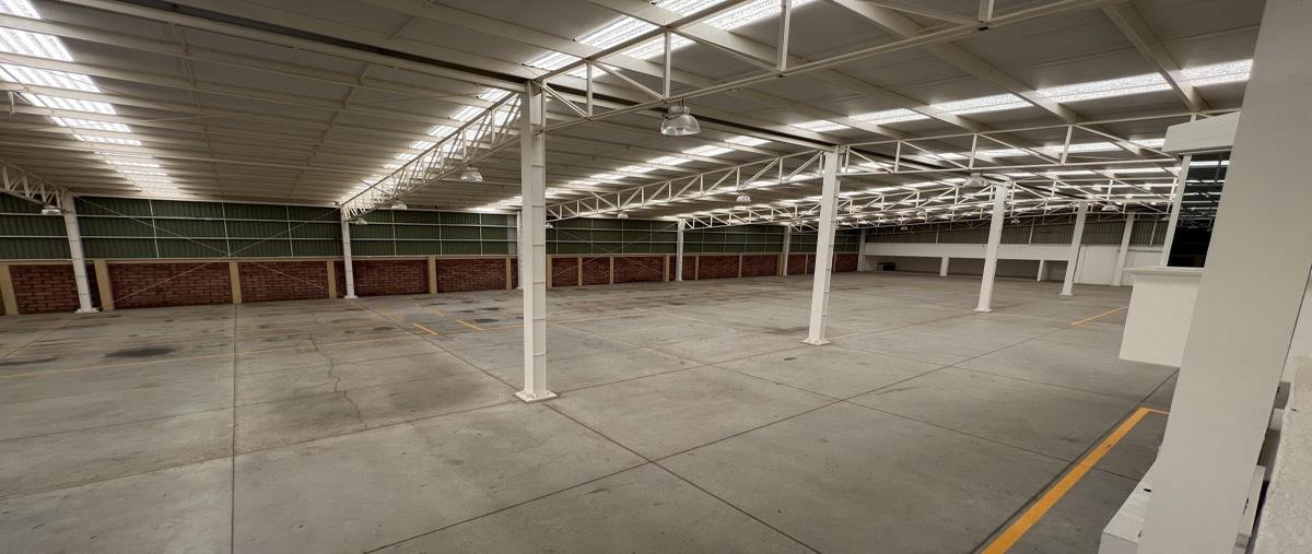 Nocnok id: mx23-og6512. tiene 6000 mts de área de trabajo ,con altura al centro 13 mts y los costados 10 mts , techo aislante , 3 respiraderos distribuidos a lo largo de la bodega cuenta con 180 mt...