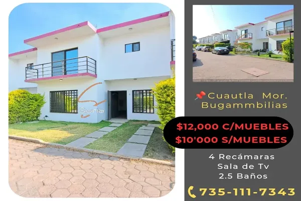Nocnok id: nn-ff1000215. casa en renta colonia cuautlixco fracc. bugambilias, cuautla, morelos. a solo unos pasos de la roca cafetería ?características: • terreno: 170 m² • construcción: 160 m² ...