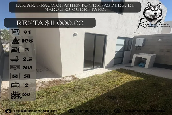 Nocnok id: nn-gwa845. mar6-002 estrena casa en renta $11,000 terrasoles 7 minutos de zakia y zibatá t. 94 c pb. •habitación en plata bajada baño de visitas - cocina equipada - sala - come...