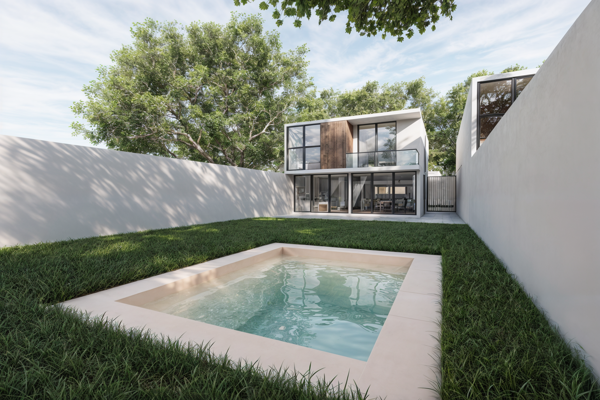 Casa en residencial liana conkal casa en privada exclusiva. terreno: 275 m2 construcción: 112 m2 jardín: 150m2 (contando la alberca) planta baja sala comedor cocina barra desayunador 1/2 baño...
