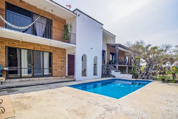 Nocnok id: nn-gud619. *a nivel de calle:* portón manual 4 lugares de estacionamiento jardín escaleras para ingresar al interior de la casa *al subir escaleras:* terraza alberca cuarto de máquinas bun...