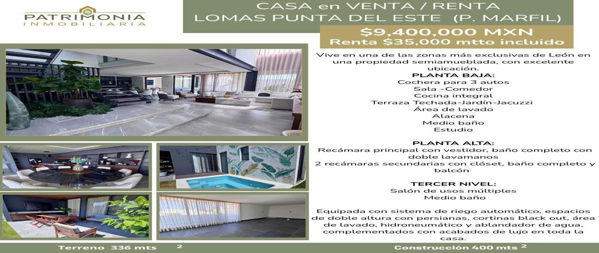 Casa en venta y renta en lomas punta del este (punta marfil), ubicada en la zona sur de león, dentro de un entorno residencial exclusivo, con excelente ubicación y amplios espacios. la propiedad cuent...