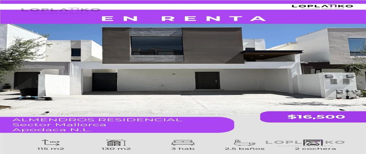 Casa en rentaalmendros residencial, sector mallorcaapodaca n.$16,500 mxn mtto incluidomt: 115 m2 mc. 130 m2 ¡estrena casa en una de las zonas con mayor crecimiento y conectividad de apodaca! ubic...