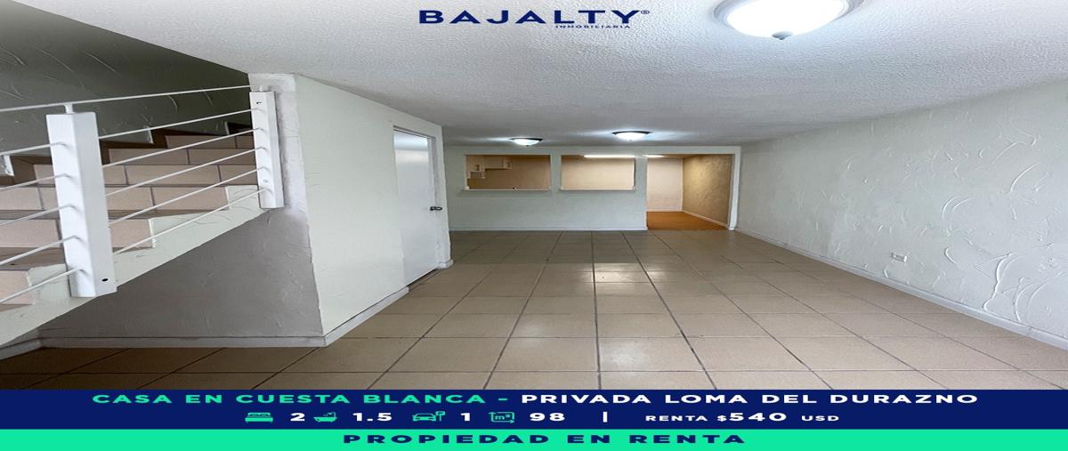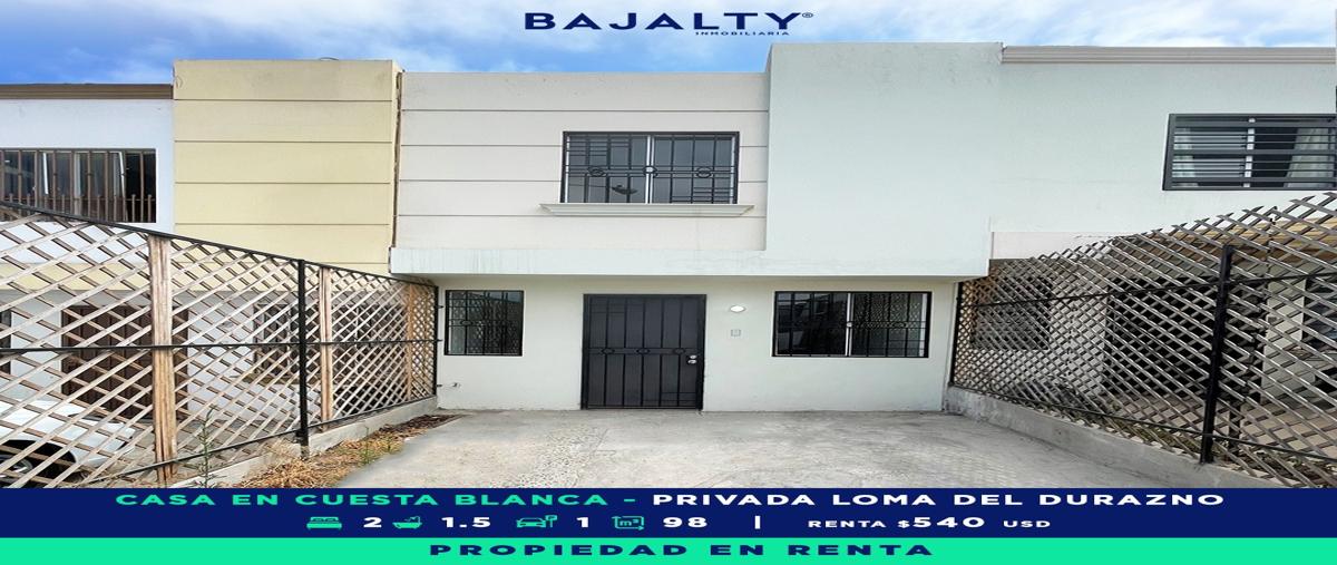 Casa en renta en cuesta blanca, sección loma blanca, privada loma del durazno excelente ubicación, casa en privada con acceso controlado. vialidades principales cerca: • a 7 min de rosarito • a 15 min...