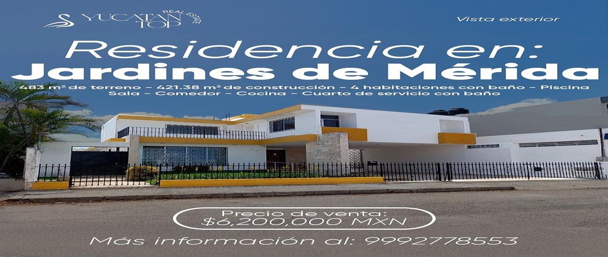 Residencia en venta en jardines de mérida ✅terreno de 483 m2 y construcción de 421 m2 en dos plantas. se ubica a un costado de la iglesia de la colonia y junto al parque. consta de lo siguiente: -4 ha...