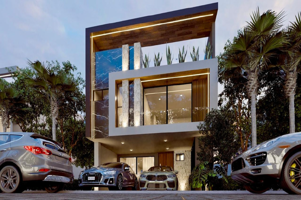 Características: planta baja: cochera para 2 autos semi techada, bodega/cuarto de máquinas, cisterna 10 mil litros, sala comedor, 1/2 baño visitas, cocina abierta totalmente equipada con torre de horn...