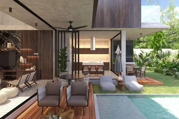 Planta baja: • estacionamiento techado para 3 vehículos • comedor/ sala a doble altura • 1/2 baño de visitas • vestíbulo • cocina gourmet completa • alacena • bar • baño completo • terraza/ grill • pi...